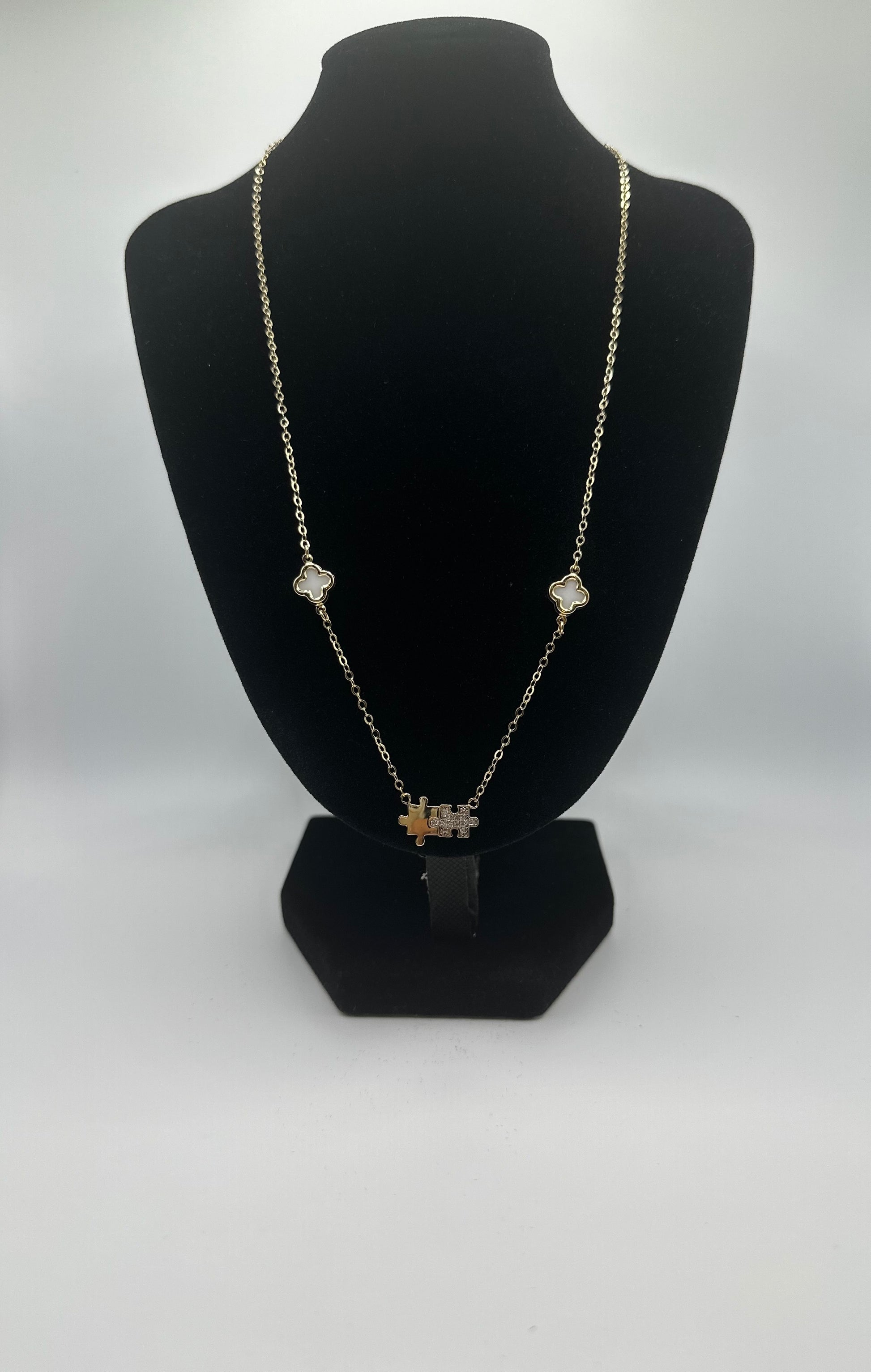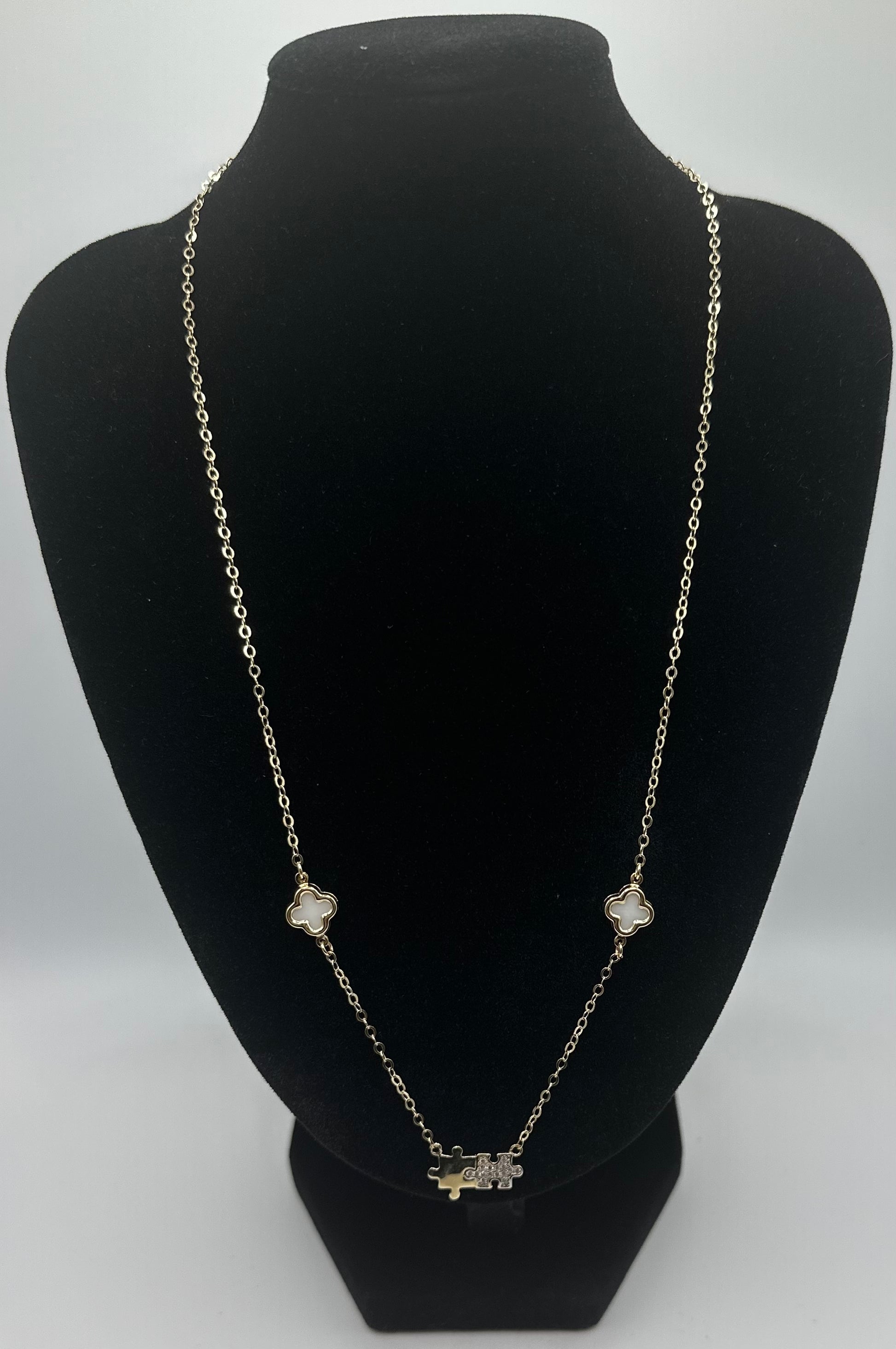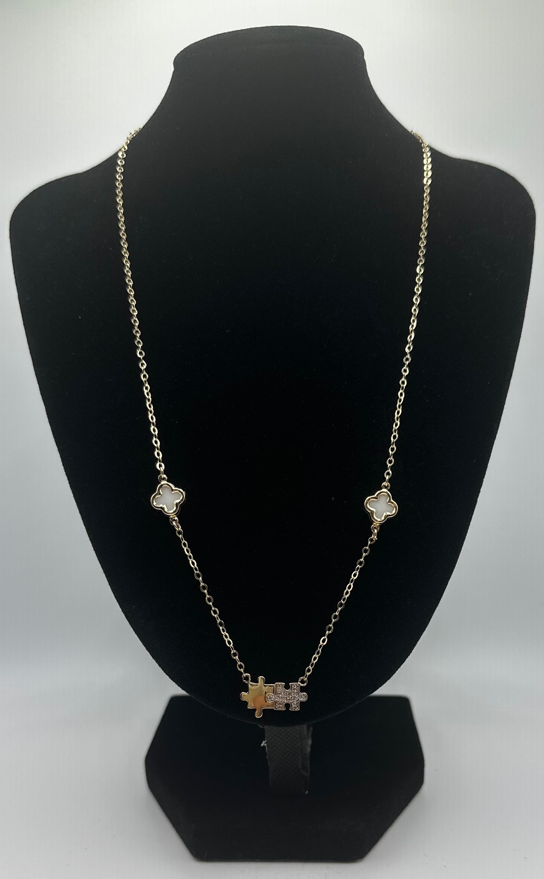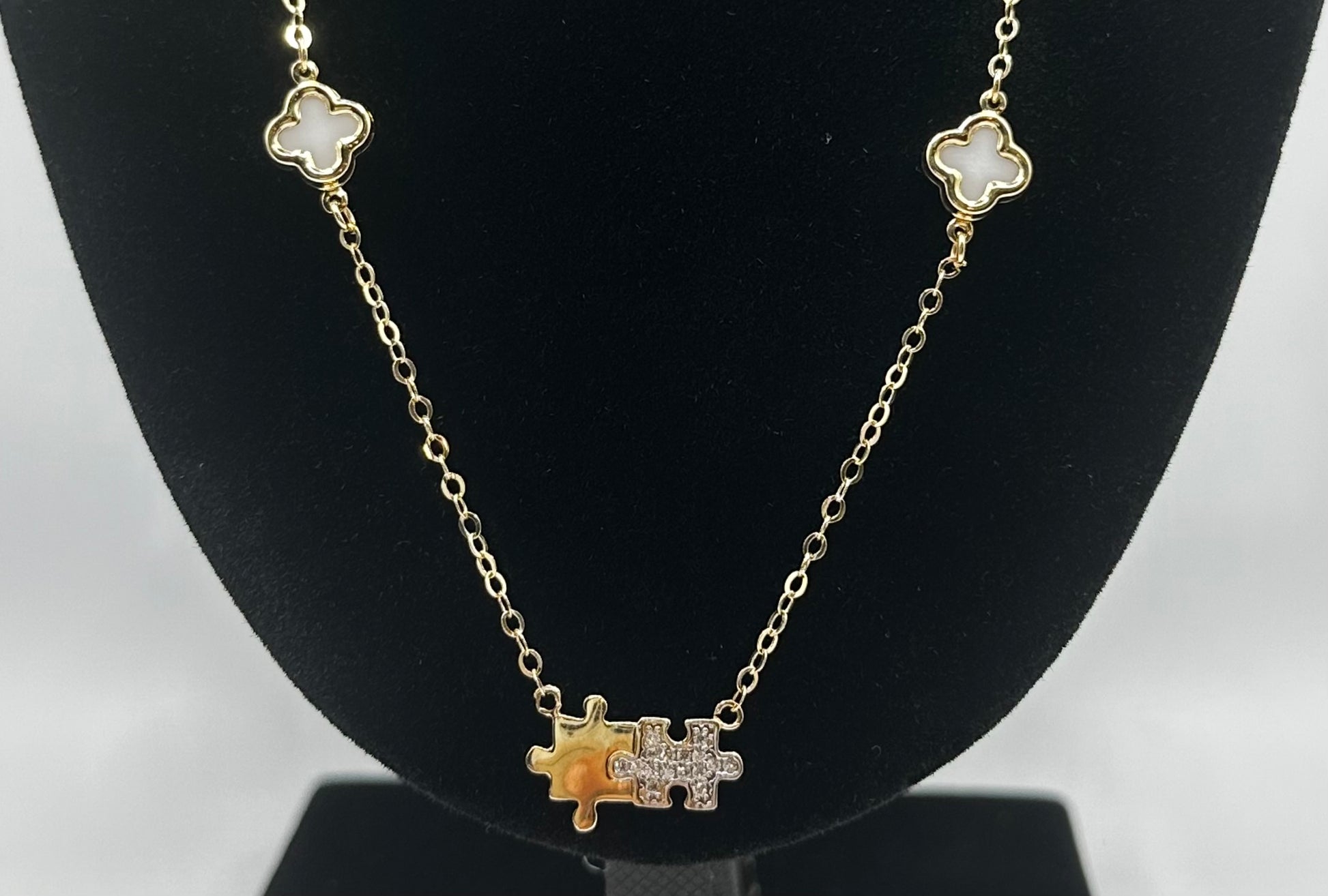 14k Gold Necklace/ White Flowers and Puzzle Piece
