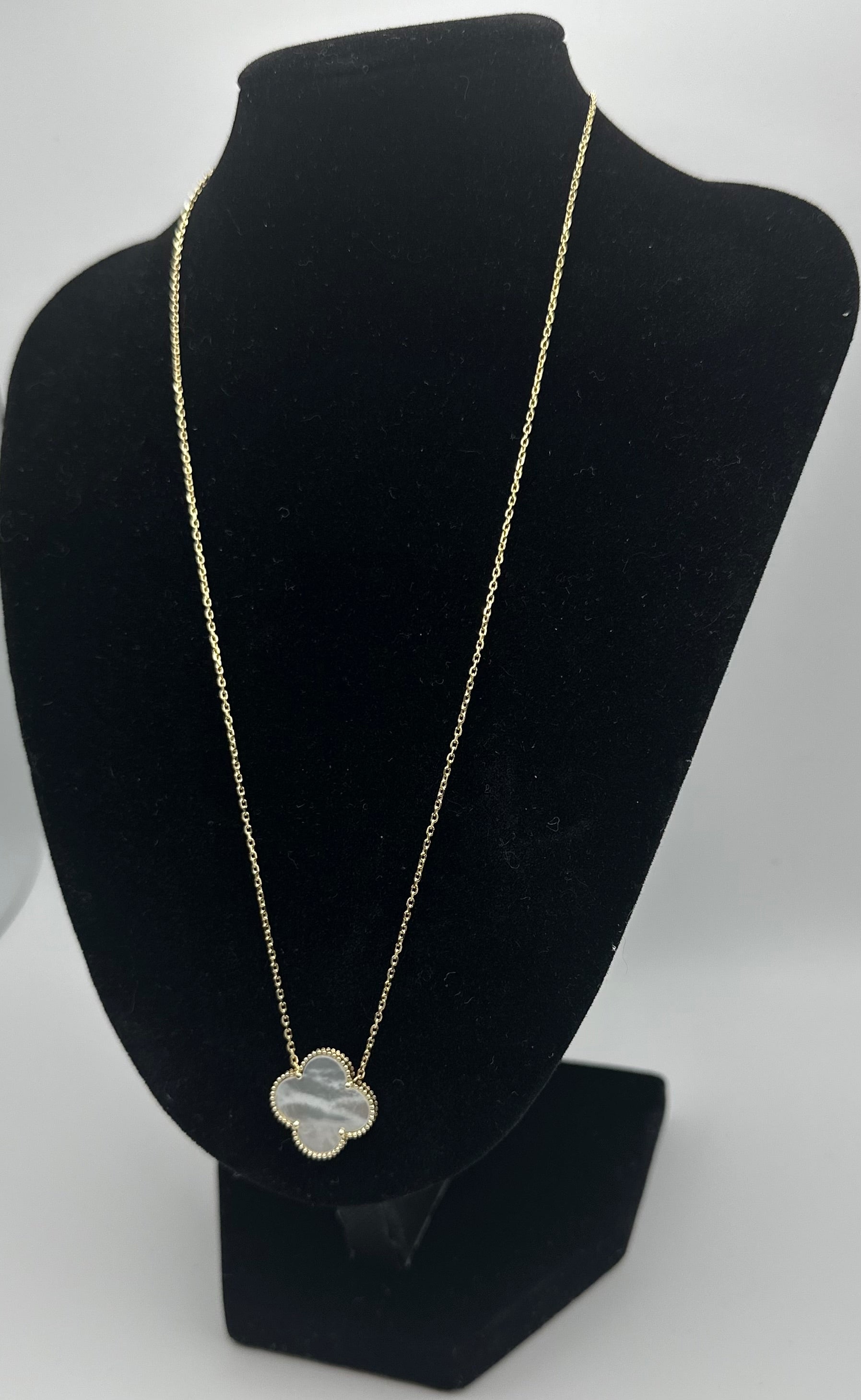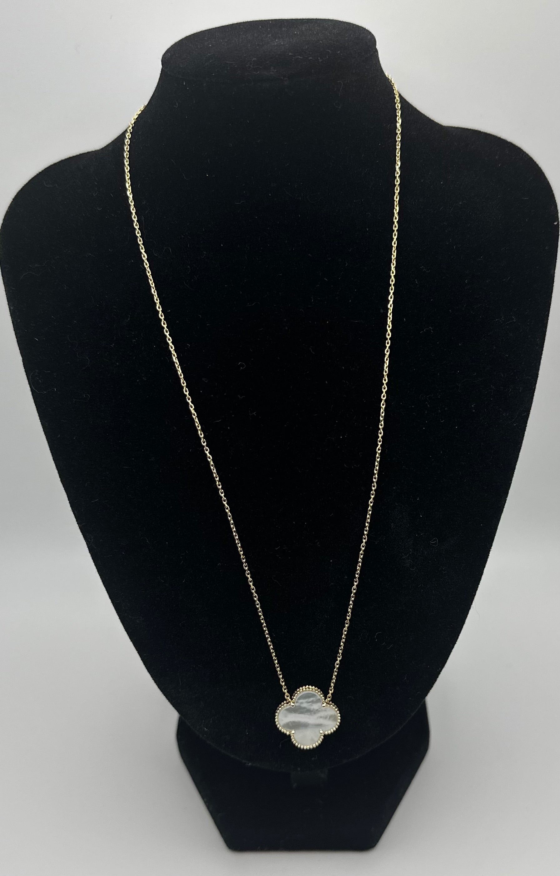 14k Gold Single White Clover Necklace